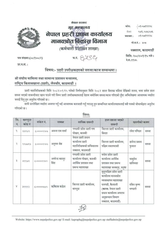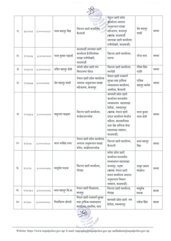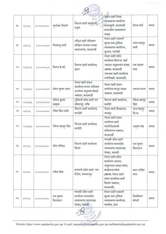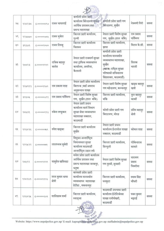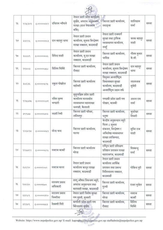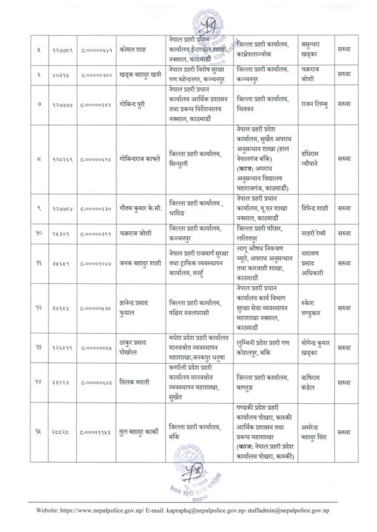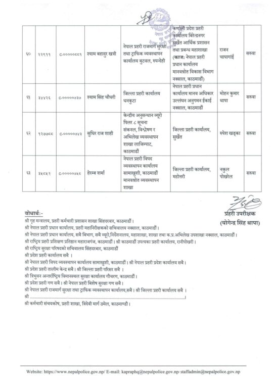 काठमाण्डु – नेपाल प्रहरीका ६३ प्रहरी उपरीक्षक (एसपी) को सरुवा भएको छ ।