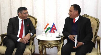 काठमाण्डु – गृहमन्त्री ओमप्रकाश अर्यालसँग भारतीय विदेश मन्त्रालयका अतिरिक्त सचिव (उत्तर मामिला हेर्नुहुने) मुनु महावरले शिष्टाचार भेटवार्ता गरेका छन् । गृह मन्त्रालयमा मंगलवार भएको भेटमा उनीहरूबिच नेपाल–भारतको द्विपक्षीय सम्बन्ध र