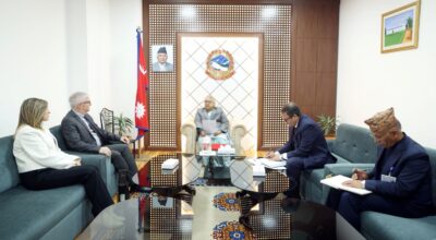 काठमाण्डु– प्रधानमन्त्री सुशीला कार्कीसमक्ष आज नेपालका लागि इजरायली राजदूत स्मुलिक एरी बासले शिष्टाचार भेट गरेका छन् । सोमबार प्रधानमन्त्री तथा मन्त्रिपरिषद्को कार्यालय, सिंहदरबारमा भेटबार्ता भएको हो । भेटका अवसरमा बासले