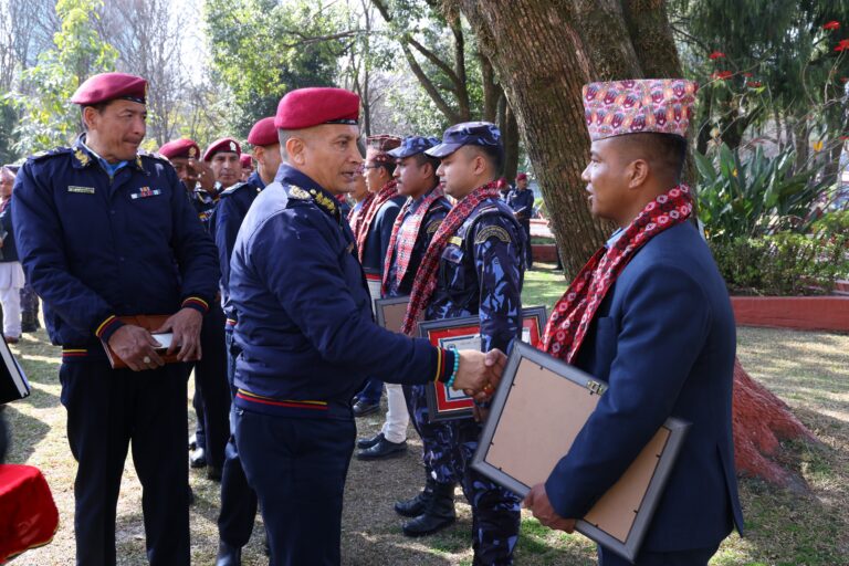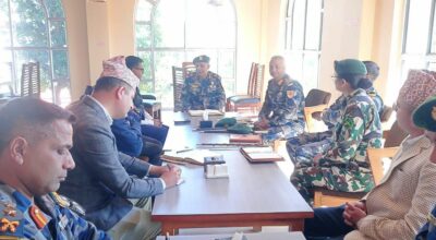काठमाण्डु– राष्ट्रपति रामचन्द्र पौडेल र नेपाल भ्रमणमा रहेका बेलायती सेनाका गोरखा ब्रिगेडका कर्नेल कमान्डेन्ट मेजर जनरल जेराल्ड एम. स्ट्रिकल्याण्ड तथा कर्नेल डेभिड जे. रोबिन्सनसहितको प्रतिनिधिमण्डलबीच भेटवार्ता भएको छ। सोमबार राष्ट्रपति