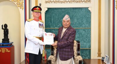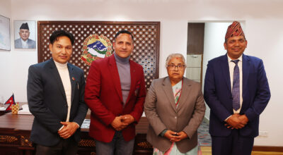 काठमाण्डु – प्रधानमन्त्री सुशीला कार्कीसँग नेपालका लागि श्रीलंकाकी नवनियुक्त राजदूत रुवान्थी डेल्पिटियाले बुधबार सिंहदरबारस्थित प्रधानमन्त्री तथा मन्त्रिपरिषद्को कार्यालयमा शिष्टाचार भेट गरेकी छन् । सो अवसरमा उनीहरूबीच द्विपक्षीय हितका विविध विषयहरूमा
