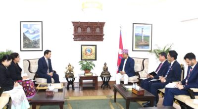 काठमाण्डु – प्रतिनिधिसभा सभामुख डोलप्रसाद (डीपी) अर्यालसँग नेपालका लागि चिनियाँ राजदूत झाङ माओमिङले शिष्टाचार भेटवार्ता गरेका छन् । भेटमा द्विपक्षीय सम्बन्ध, संसदीय सहकार्य, विकास साझेदारी र क्षेत्रीय तथा अन्तर्राष्ट्रिय विषयमा