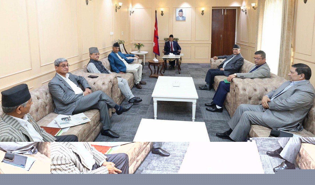 सिंहदरवारस्थित प्रधानमन्त्री कार्यालयमा प्रमुख प्रतिपक्ष दलका नेता केपी शर्मा ओलीसहित प्रमुख तीन दलका शिर्ष नेतासहित प्रमुख सचेतकहरुको सहभागिता रहेको छ ।