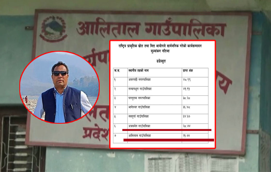 जसअनुसार आलिताल गाउपालिकाले २१.७४ अंक पाएको छ । यस गाउँपालिकाका अध्यक्ष शेरसिंह पार्की हुन् । त्यसैगरी अमरगढी नगरपालिकाका डडेल्धुराका नगरपालिका र गाउँपालिका मध्ये सबैभन्दा उत्कृष्ट भएको छ । अमरगढीले ४८.९९ अंक पाएको छ । डडेल्धुरामा सात वटा पालिका पर्छन । जसमध्ये दुई नगरपालिका र पाँच गाउँपालिका छन् । यी सात पालिका मध्ये आलिताल गाउँपालिका कार्यसम्पादन मूल्यांकनमा निकै कमजोर देखिएको छ ।