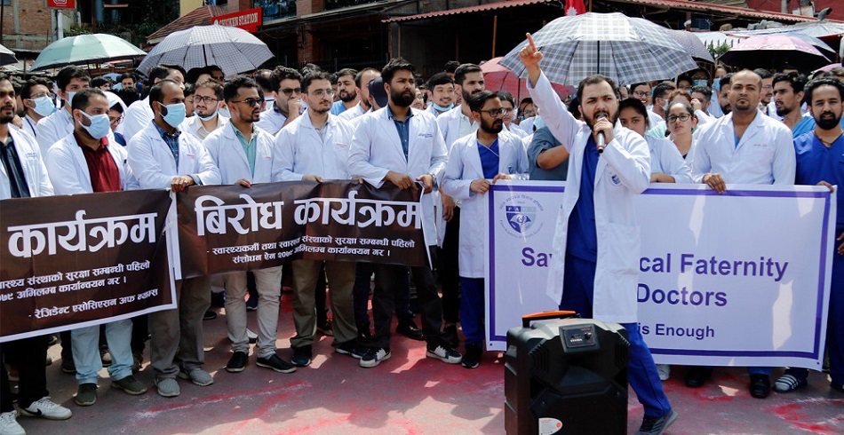 सोमबार पोखराको मणिपाल अस्पतालमा एक जना बिरामीको मृत्यु भएपछि मृतकका आफन्तले चिकित्सकमाथि कुटपिट गरेका थिए। आइतबार राती पनि लमजुङ जिल्ला अस्पतालमा बेंसीसहर नगरपालिका-७ का वडाध्यक्ष ऋषिराम बस्नेतले डाक्टर कुटेका थिए। यसअघि गत २७ भदौमा हेटौंडाको सञ्चो अस्पतालमा बिरामीका आफन्तले दुई जना डाक्टरमाथि कुटपिट गरेका थिए। यसैबीच सुरक्षाको माग गर्दै सडकमा उत्रिएका डाक्टरको आन्दोलनमा प्रहरीले हस्तक्षेप गरेको छ ।