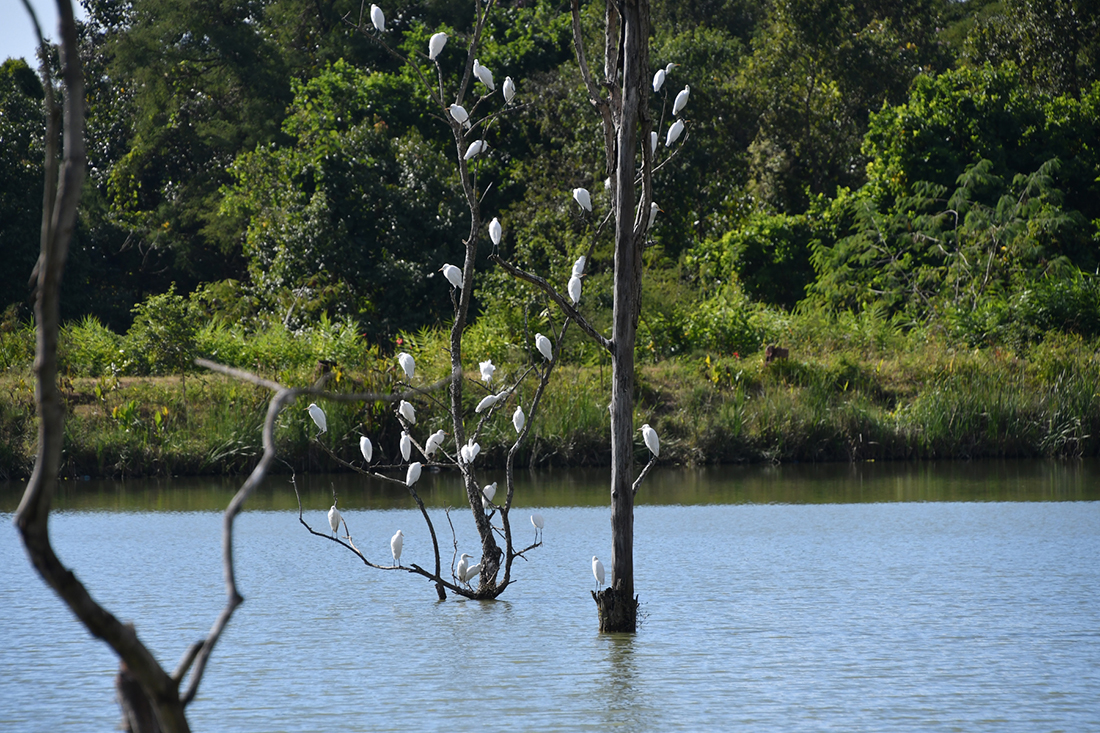 दाङको घोराही उपमहानगरपालिका–१७, कर्जाहीस्थित जलाशयमा आहारा कुरेर बसेका बकुल्लाको बथान। तस्बिर : कुलदीप न्यौपाने/रासस ।