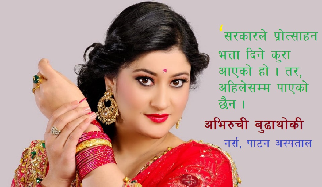 प्रोत्साहन भत्ता दिने कुरा आएको हो तर अहिलेसम्म हामीले पाएको छैन । हाम्रो अस्पतालमा कसैले पनि पाएका छैनन् । अस्पतालमा आएको भए त हामीले पाउनुपर्ने हो तर अस्पतालमै नआएपछि हामीले कहाँबाट पाउने ? सरकारले प्रोत्साहन भत्ता दिन्छु भनेर बोलेका कुरा कार्यान्वयन गर्न सकेन । कि त बोल्दै नबोल्नु, बोलिसकेपछि कार्यान्वयन चाहीँ गर्नुपर्छ ।