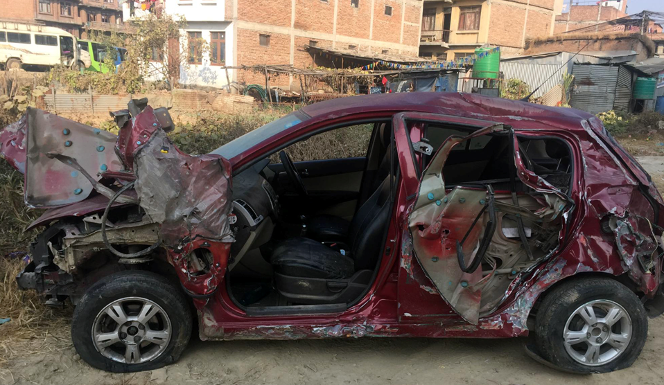 चार जना सवार उक्त कार अनियन्त्रित भई दुर्घटना भएको प्रहरी परिसर भक्तपुरका प्रहरी नायब उपरीक्षक दीपक गिरीले जानकारी दिए । उनले घटनाबारे जानकारी पाएलगत्तै घटनास्थल पुगेर घाइते श्रेष्ठलाई उपचारका लागि मध्यपुर अस्पताल पु¥याइएको बताए । घाइते श्रेष्ठको अस्पताल पु¥याउँदा चिकित्सकले मृत्यु भइसकेको जनाएका थिए ।