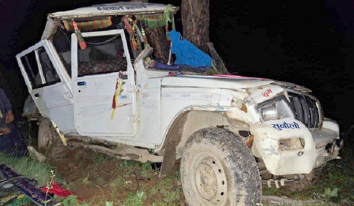 अनियन्त्रित जिप सडकबाट करिब १० मिटर तल खसेर सल्लाको रूखमा अड्किएको थियो । जिप रूखमा अड्किँदा ठूलो मानवीय क्षति हुनबाट जोगिएको प्रहरीले जनाएको छ ।