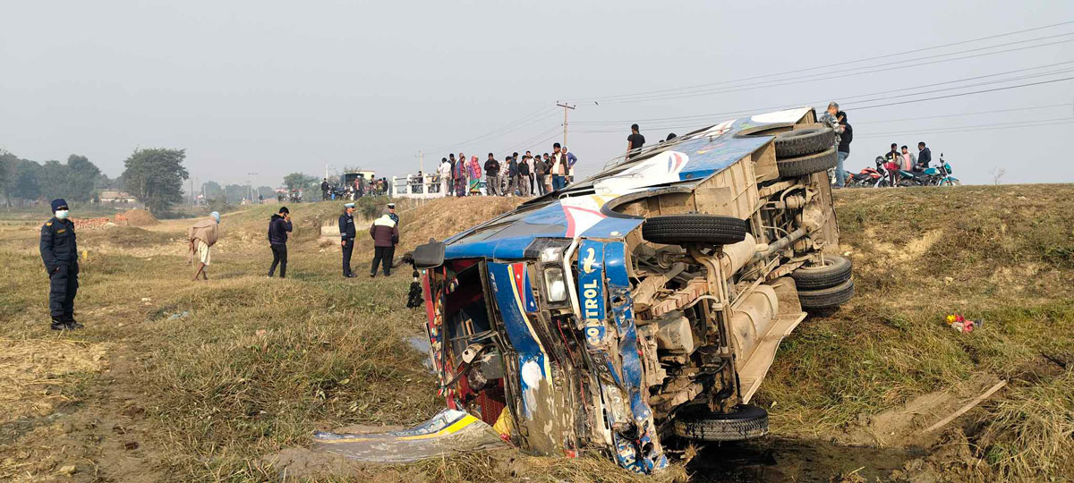 बसमा सवार ४ जनाको स्थानीय अलशेख हस्पिटलमा उपचार भइरहेको छ । ६ जना घाइतेको भैरहवामा उपचार भइरहेको छ ।