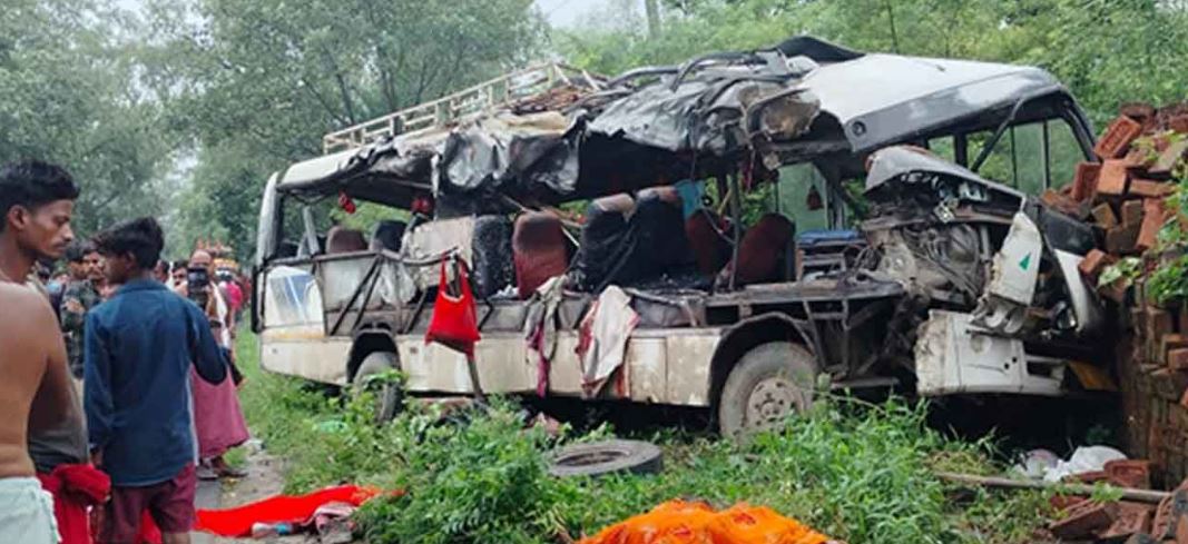 दुर्घटना झारखण्डको देवघर जिल्लामा भएको हो। घटनास्थलबाट प्राप्त दृश्यहरूमा बस पूर्णरूपमा क्षतिग्रस्त देखिन्छ, विशेषगरी पछाडिको भाग जलेर नष्ट भएको छ।