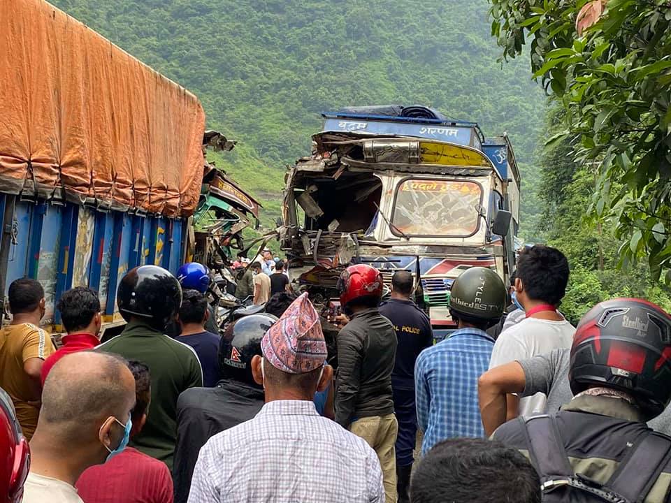 नारायणगढ–मुग्लिन सडक खण्डमा दुई वटा ट्रक ठोक्किए