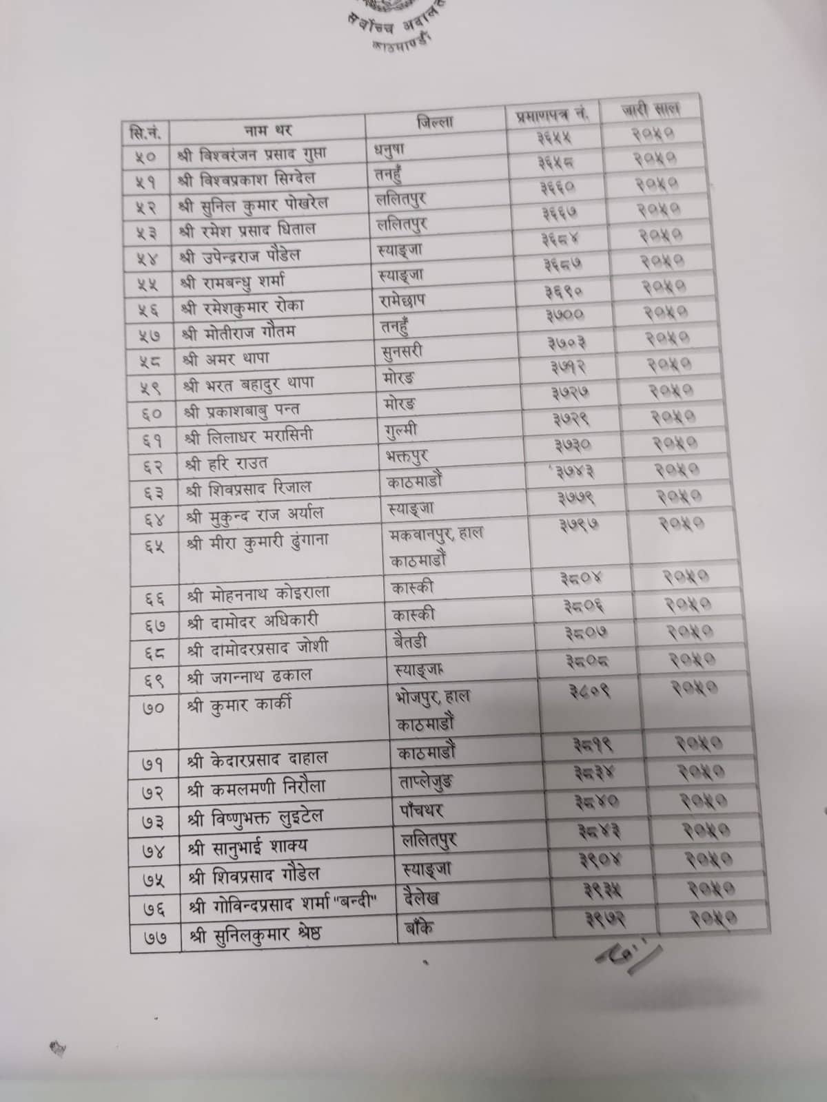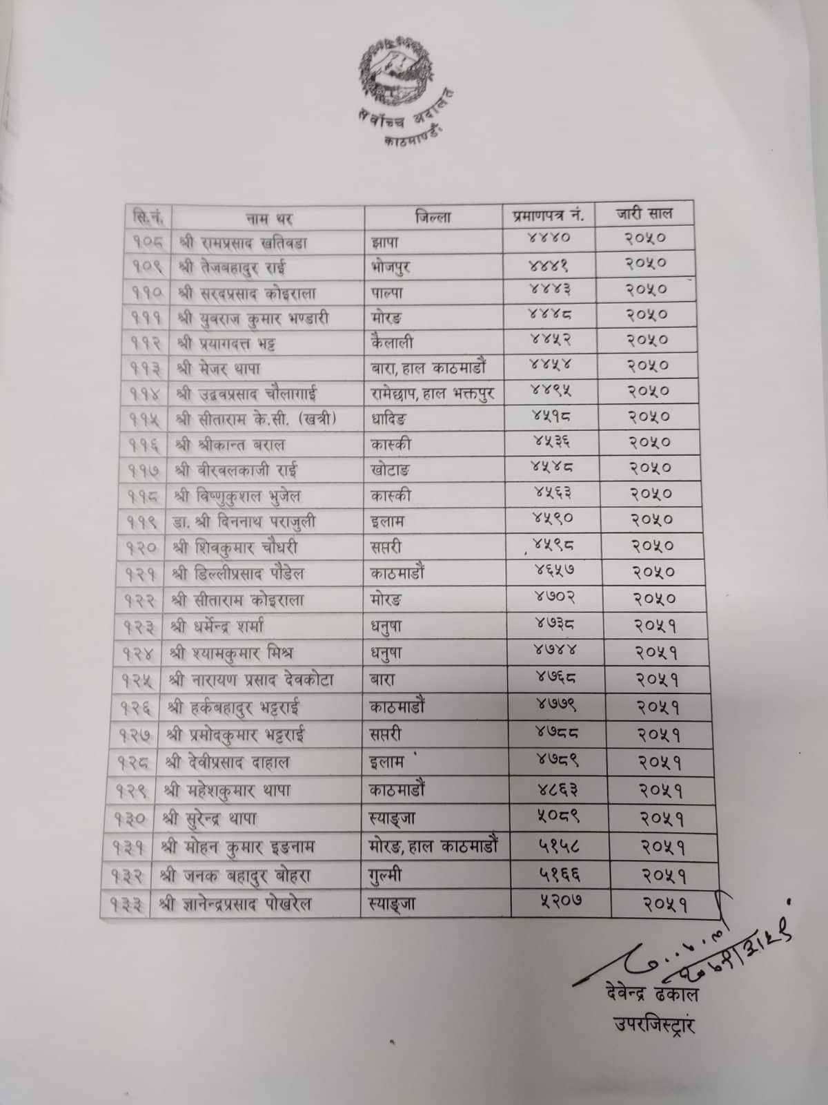 वरिष्ठ उपाधि पाउनेमा कानुनमन्त्री गोविन्दप्रसाद शर्मा बन्दी, पूर्वमहान्यायाधिवक्ता रमेश बडाल, नेपाल बार एसोसिएसनका पूर्वउपाध्यक्ष टिकाराम भट्टराई, पूर्वमहासचिव सुनिल पोखरेल, अधिवक्ता मेघराज पोखरेल, प्रतिनिधिसभाको कानुन न्याय समितिका सभापतिसमेत रहेका अधिवक्ता कृष्णभक्त पोखरेललगायत रहेका छन् ।