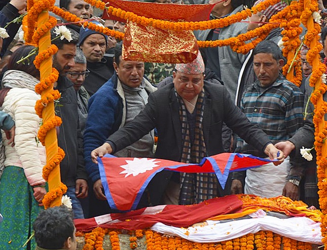अधिकारीलाई राजकीय सम्मानका साथ अन्त्यष्टि गरिएको छ ।उपप्रधान तथा रक्षामन्त्री इश्वर पोखरेलले अधिकारीलाई राष्ट्रिय झण्डा ओढाएर सम्मान दिए । उपचारको क्रममा शनिबार बेलुका निधन भएकाे थियो।