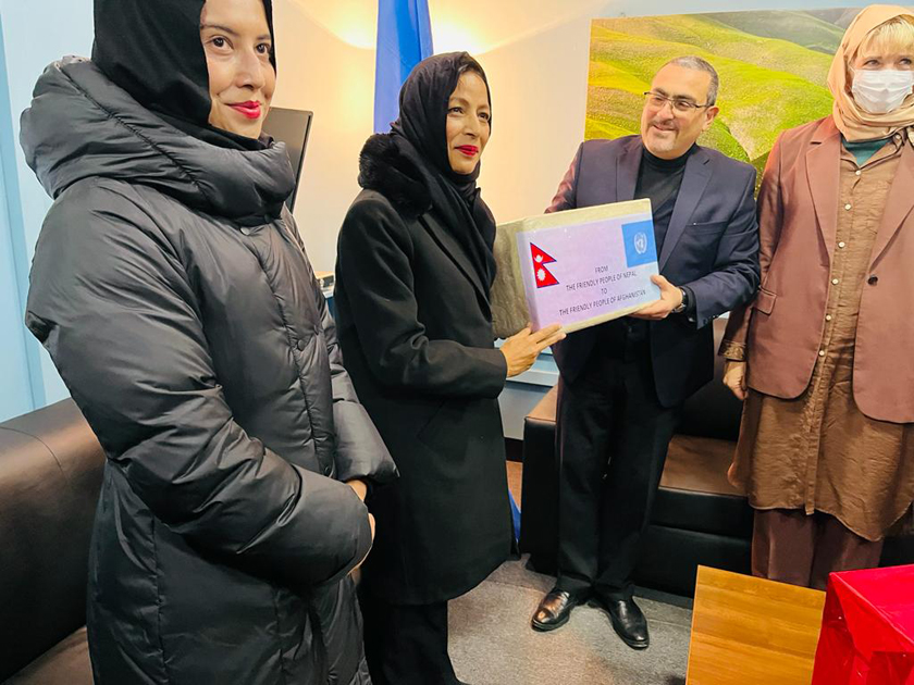 अफगानिस्तानको अहिलेको प्रतिकूल मौसम तथा विषम राजनीतिक परिस्थितिलाई दृष्टिगत गरी त्यहाँका नागरिकलाई अन्तर्राष्ट्रिय समुदायबाट मानवीय सहायता जुटाउन भारतसहितका देशले सहयोग गरेसँगै परराष्ट्रमन्त्री डा. नारायण खड्काको अगुवाइमा नेपालबाट औषधि, लत्ताकपडा र घरायसी सामान सङ्कलन गरेर आजै काबुल पठाइएको हो ।