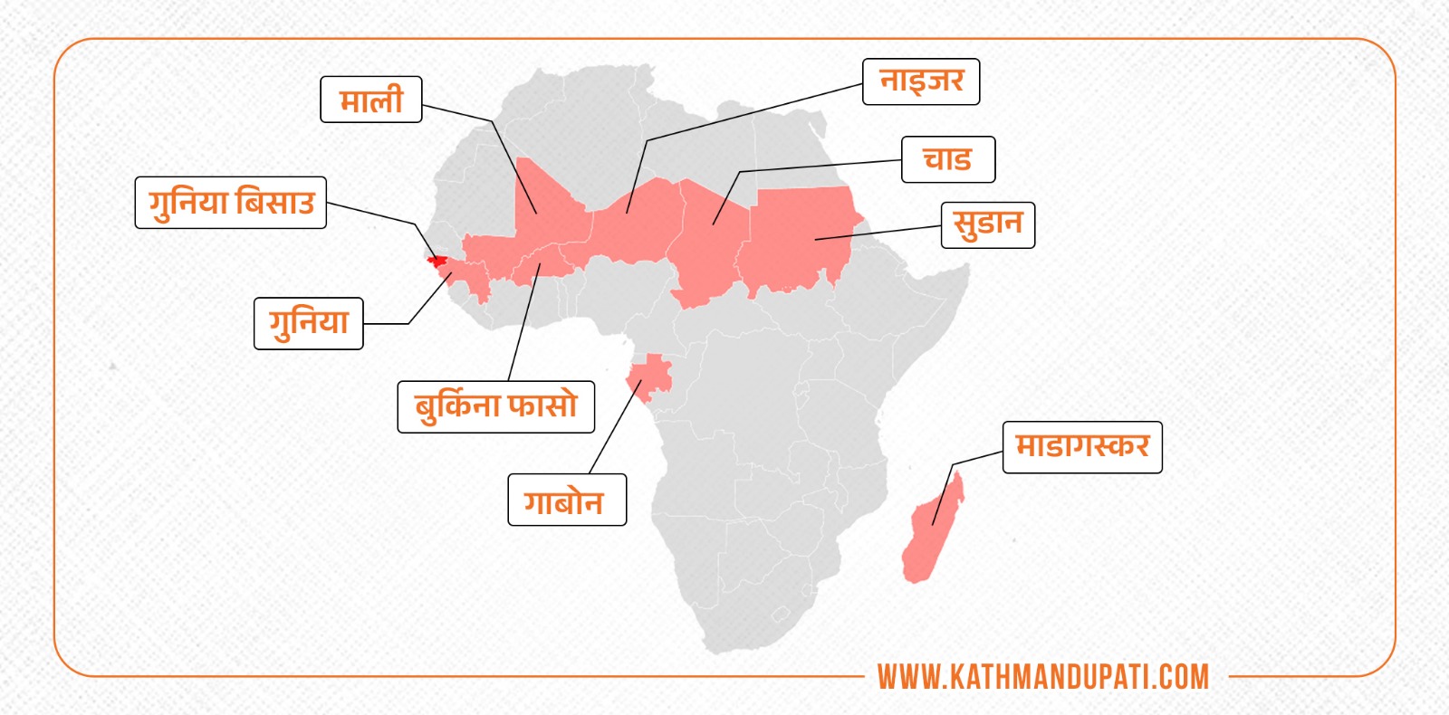 गिनी–बिसाउ मात्र होइन, अरु अफ्रिकी देशहरू पनि छन् जहाँ सन् २०२० पछि सैन्य सत्ताकब्जा भएको छ ।