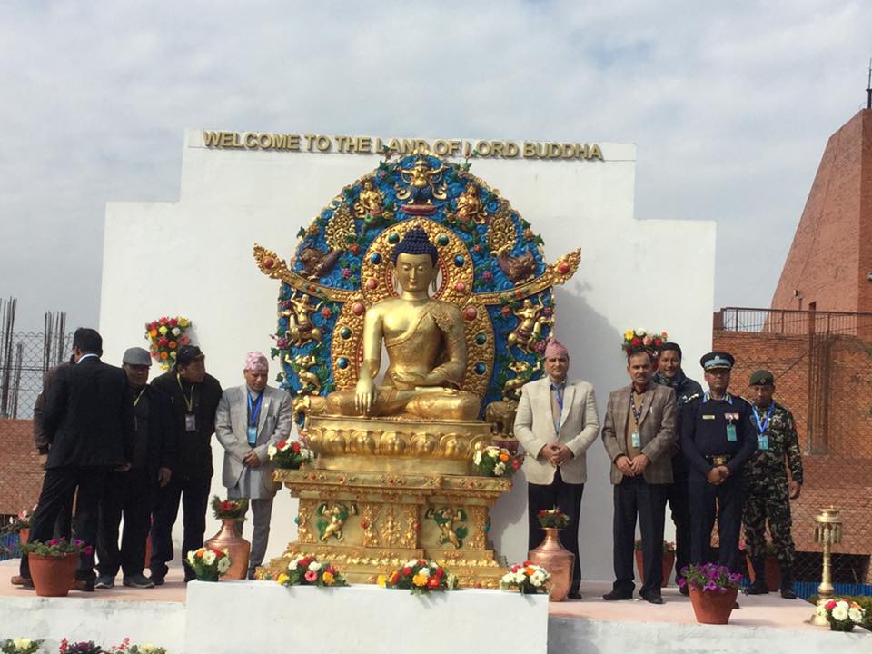 सोही अनुसार नै एयरपोर्टमा जहाजबाट झरेपछि बाहिर निस्कने बाटोमा देखिनेगरी बुद्धको मुर्ति स्थापित गरिएको मन्त्री भट्टराईले जानकारी दिए ।