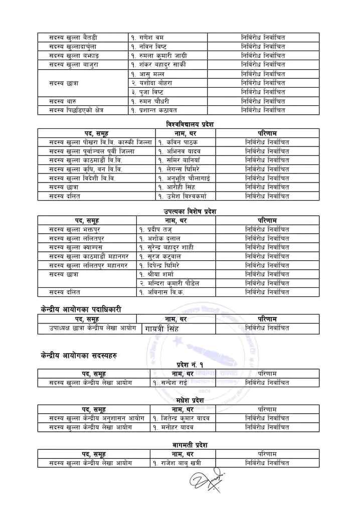 यी हुन् निर्विरोध निर्वाचित भएकाहरू :