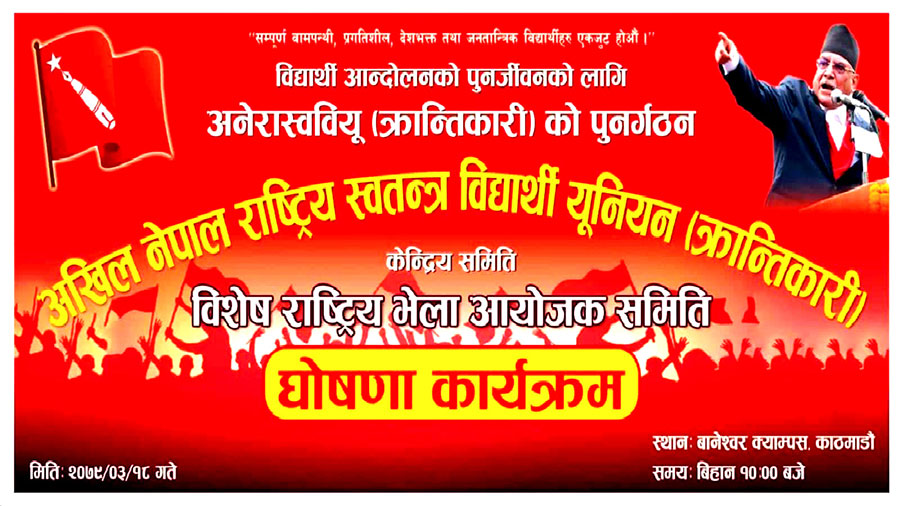 उनका अनुसार सो आयोजक समितिले संगठनलाई बिद्यान बमोजिम काम कारवाही गराउन र सम्मेलनको तयारी गर्नेछ । वानेश्वरस्थित नेपाल कमर्श क्याम्पसवाट घोषणा हुने उक्त नयाँ कमिटीमा असन्तुष्ट पक्षका देशैभरीका बिद्यार्थी नेताहरुको समर्थन रहेको यादवले दावी गरेका छन ।