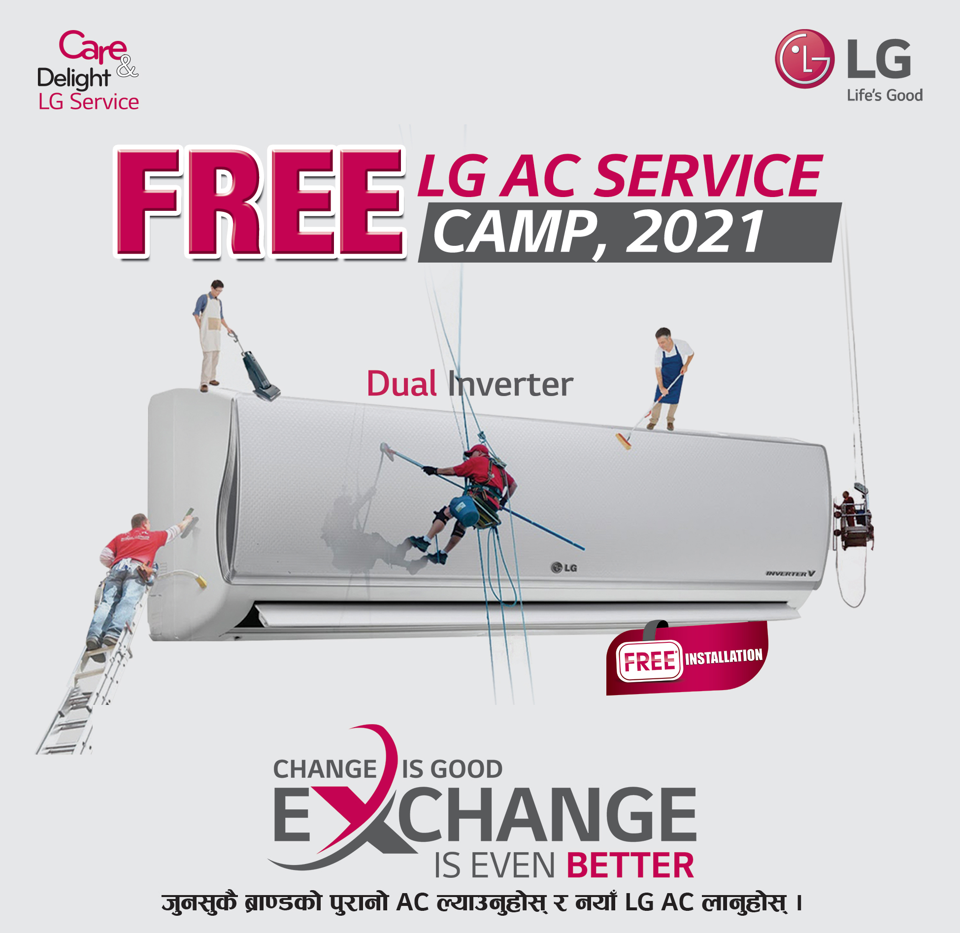 यस कार्यक्रम योजना अन्तर्गत ग्राहकवर्गहरुले कुनै पनि ब्राण्डको एसी माफ्रि सर्भिसिङ पाउनुका साथै आफ्नाे पुरानो एसी साट्न चाहेमा, उक्त पुरानो एसीमा उचित मूल्याङकन गर्दै एलजीको उच्च गुणस्तरिय एसीसँग साट्न सक्नेछन् ।