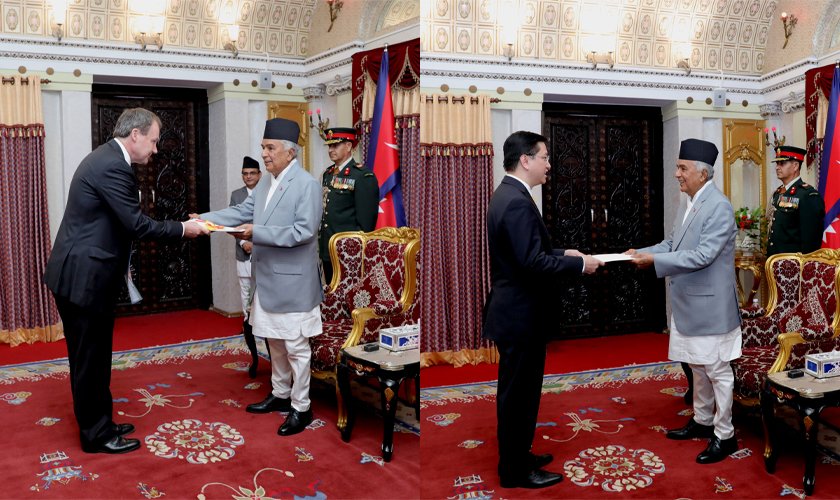 काठमाण्डु – राष्ट्रपति रामचन्द्र पौडेलसमक्ष दुई देशका राजदूतले ओहोदाको प्रमाणपत्र पेस गरेका छन्।