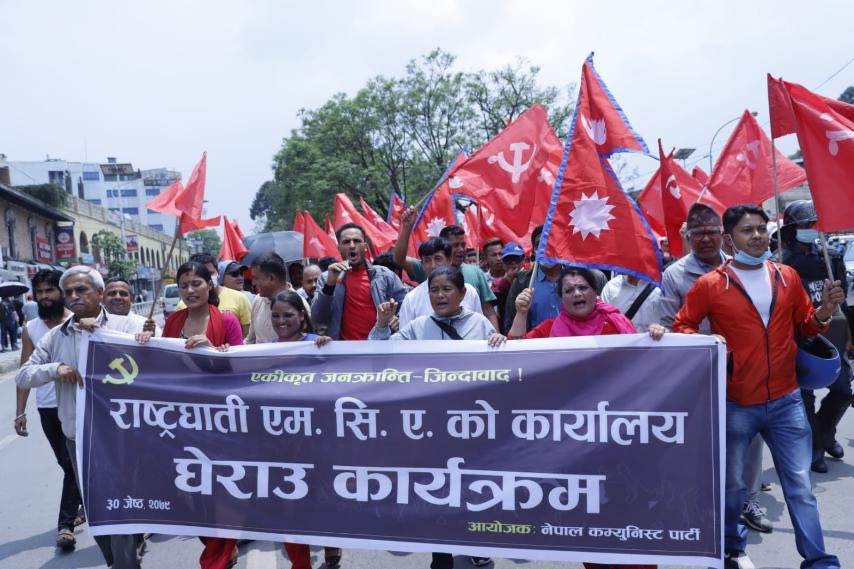 रत्नपार्कस्थित शान्तिबाटिका र कमलादीमा भेलाभै दरवारमार्गमा रहेको एमसीसीको नेपालस्थित मुख्यालय पुगेर प्रदर्शन गरेको हो । जुलुसलाई केन्द्रीय नेता माइला तामाङले नेतृत्व गरेका छन् ।