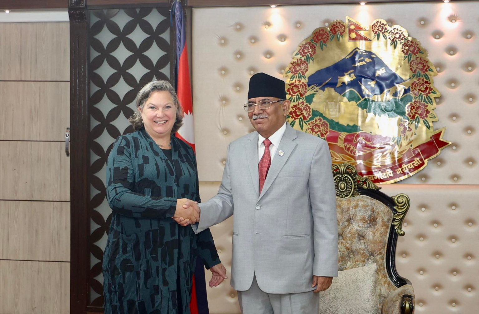 दुईदिने नेपाल भ्रमणमा रहेकी अमेरिकाका राजनीतिक मामिलासम्बन्धी उपविदेशमन्त्री भिक्टोरिया नुल्यान्डले प्रधानमन्त्री पुष्पकमल दाहाल प्रचण्डलाई भेटेर नेपालको विकासमा अमेरिकाले सुरु गरेको विकास परियोजनाहरु अगाडि बढाउन तयार र दृढ रहेको जानकारी गराएकी हुन् ।