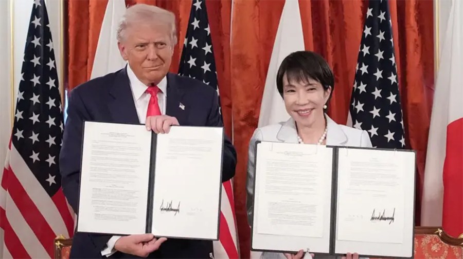 पहिलो सम्झौतामा ‘अमेरिका–जापान गठबन्धनको नयाँ सुनौलो युग’को घोषणा गरिएको छ । यस सम्झौताअनुसार जापानी लगानीकर्ताले अमेरिकामा करिब ५५० अर्ब अमेरिकी डलर बराबरको लगानी गर्नेछन् । बदलामा अमेरिकी पक्षले जापानी निर्यातमा १५ प्रतिशत कर लागू गर्ने व्यवस्था गरेको छ ।