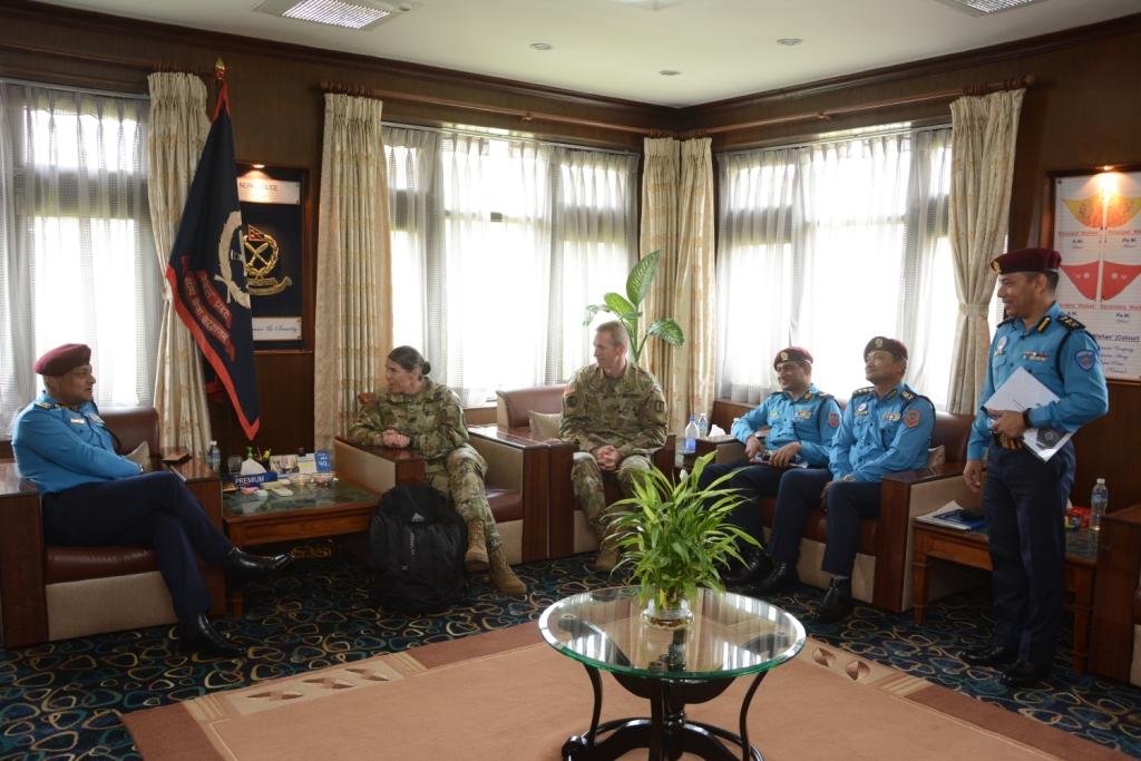 काठमाडौं – सांस्कृतिक तथा नेतृत्वदायी कार्यक्रममा सहभागी हुन लेफ्टिनेन्ट कर्णेल कलिना क्रिजको नेतृत्वमा नेपाल आएको अमेरिकी सेनाको अधिकृत क्याडेटको ३५ सदस्यीय टोलीले प्रहरी प्रधान कार्यालयको भ्रमण गरी विपद व्यवस्थापन सम्बन्धी कार्यशैली र अनुभव आदानप्रदान गरेका छन् ।