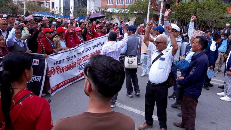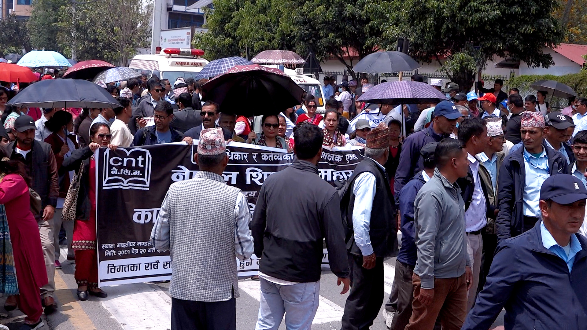 काठमाण्डु– १५ दिनदेखि शिक्षकहरूको राजधानी केन्द्रित सडक आन्दोलन आज पनि जारी छ ।