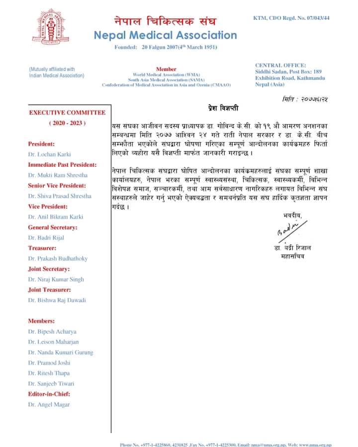 चिकित्सक संघले फिर्ता लियो आन्दोलन