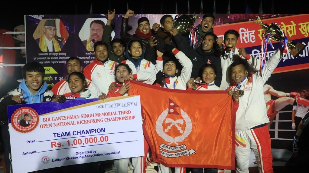 काठमाडौं – सशस्त्र प्रहरी बलको एपीएफ क्लब वीर गणेशमान सिंह स्मृति तेस्रो राष्ट्रिय खुला किक बक्सिङ प्रतियोगितामा च्याम्पियन बनेको छ । एपीएफले पाँच स्वर्ण पदकसहित च्याम्पियन भई एक लाख पुरस्कार प्राप्त गरेको छ ।