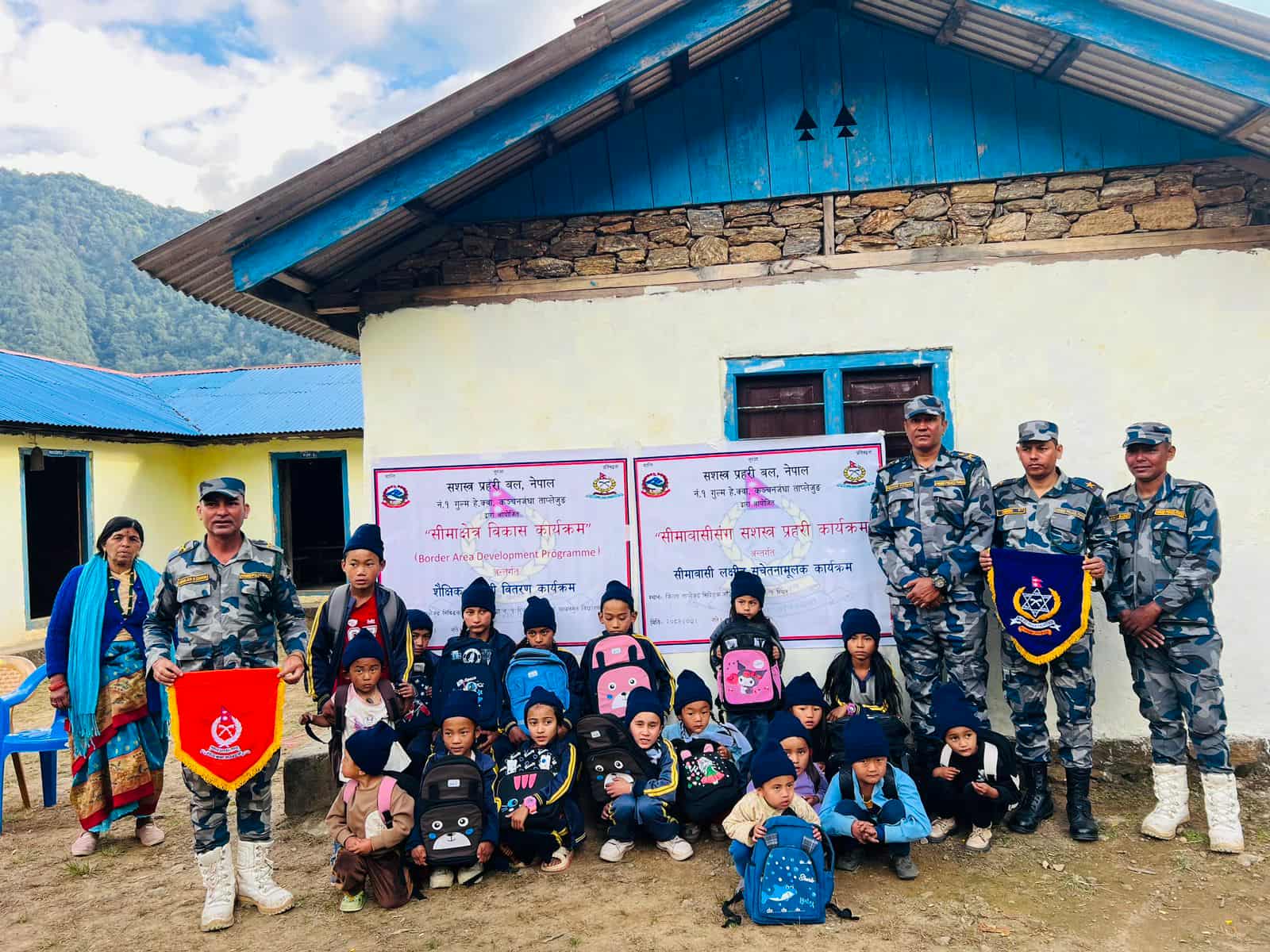 सशस्त्र प्रहरी बल नेपाल नम्बर १ कञ्चनजंघा गुल्म ताप्लेजुङले ‘सीमावासीसँग सशस्त्र प्रहरी’ कार्यक्रमअन्तर्गत विद्यालयको प्राङ्गणमा आयोजना गरेको सीमा क्षेत्र विकास कार्यक्रममा सामग्री वितरण गरिएको छ ।