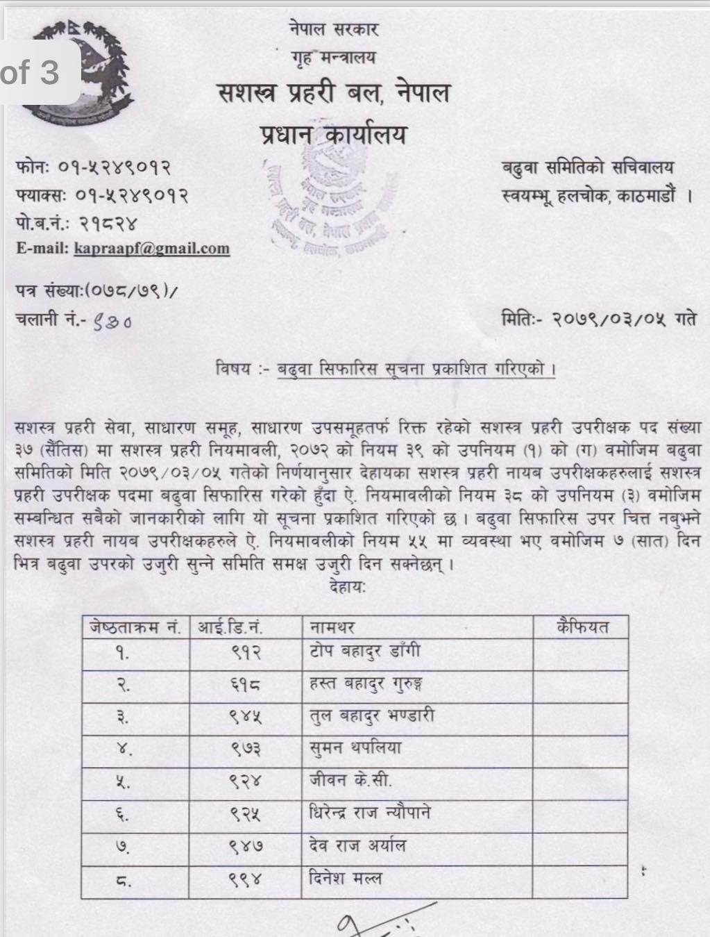 सशस्त्र प्रहरीमा मध्यरातमा भयो एसपी बढुवामा सिफारिस, प्रचण्डकै ज्वाई बढुवामा छुटे