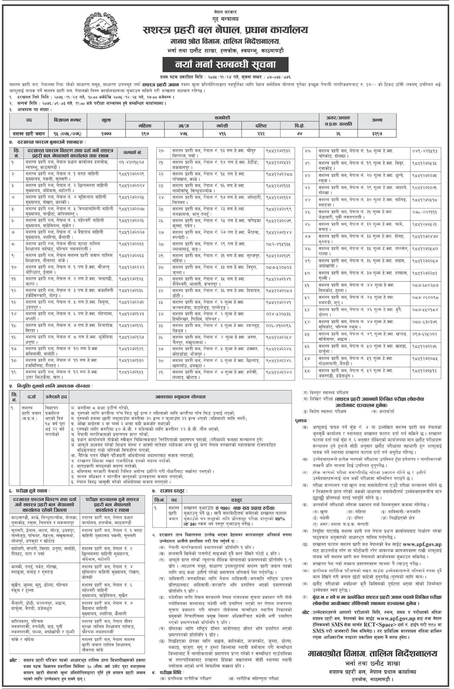 सशस्त्रले शुक्रबार प्रकाशन गरेको सूचनाअनुसार खुलातर्फ १ हजार ७ सय ७७, महिला २ सय ९७, आदिवासी, जनजाति ४ सय ७५, मधेसी ४ सय १६, दलित २ सय २२, पिछडिएको क्षेत्र ७४ र अमर प्रहरीबाट ३६ गरी जम्मा ३ हजार २ सय ९७ जना जवान माग गरिएको छ।