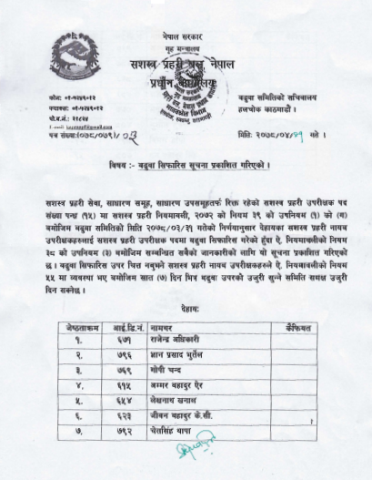 सशस्त्र प्रहरीको बढुवा समितिको बिहीबारको बैठकले उक्त निर्णय गरेको हो। र, सात दिनभित्र बढुवा उपर उजुरी दिन पनि आह्वान गरिएको छ।