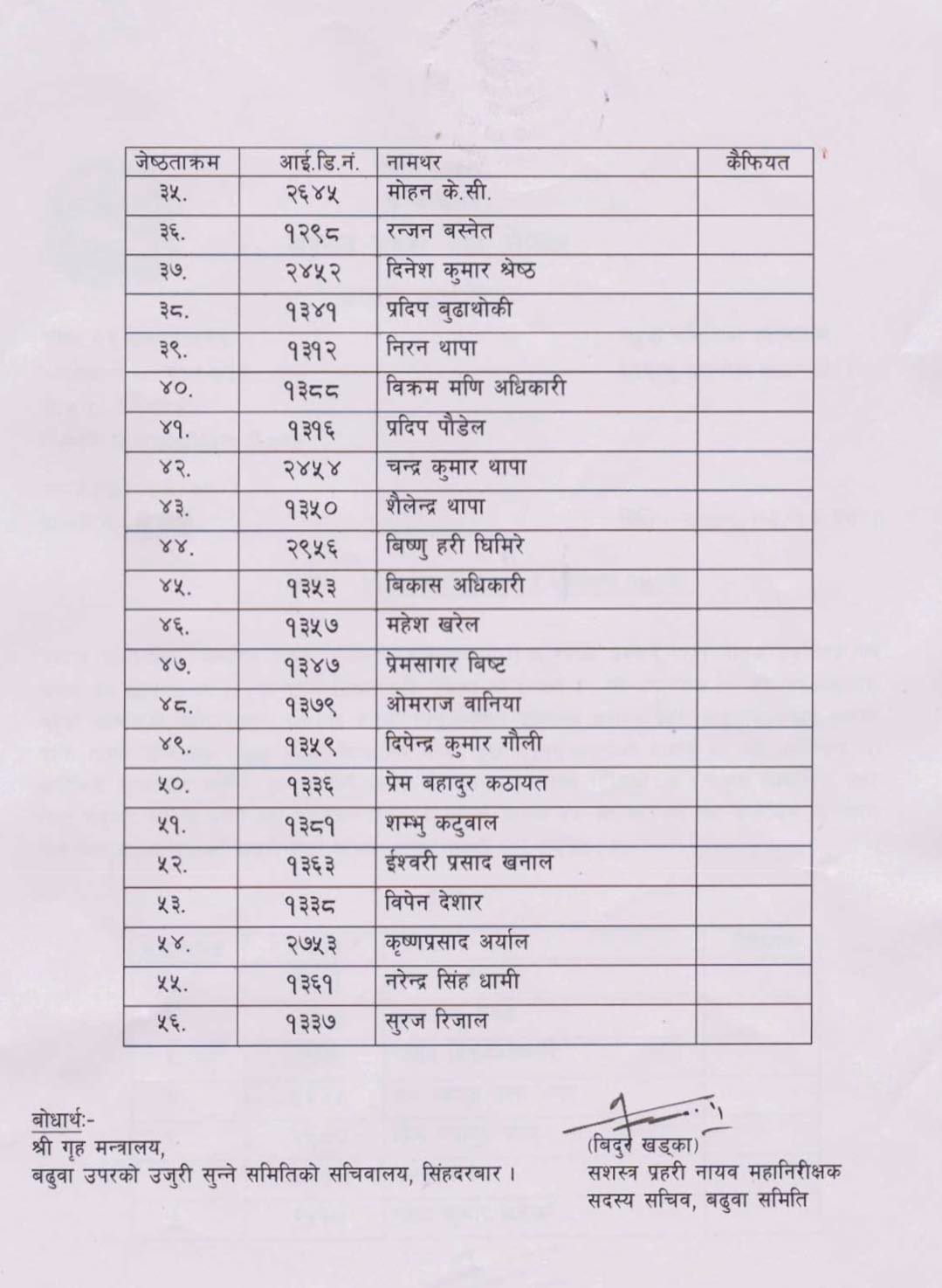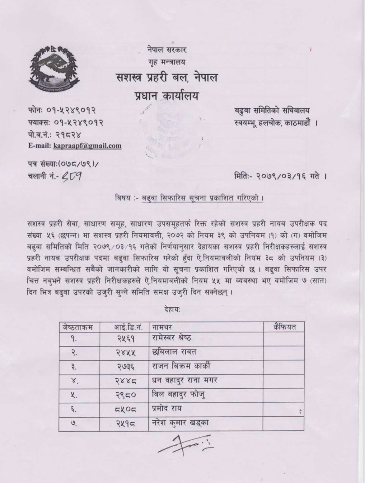 सशस्त्रमा ५६ जना इन्सपेक्टर डिएसपीमा बढुवा सिफारिस