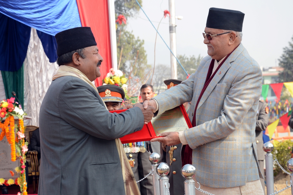 कार्यक्रममा प्रधानमन्त्री ओलीले यसवर्ष उत्कृष्ट बाहिनी घोषित सशस्त्र प्रहरी बल, नेपाल बाहिनी मुख्यालय रुपन्देही नम्बर ५ बाहिनीका बाहिनीपति सशस्त्र प्रहरी नायव महानिरीक्षक चिरञ्जीवी अधिकारीलाई ‘उत्कृष्ट बाहिनी अवार्ड’ प्रदान गर्नुभयो ।