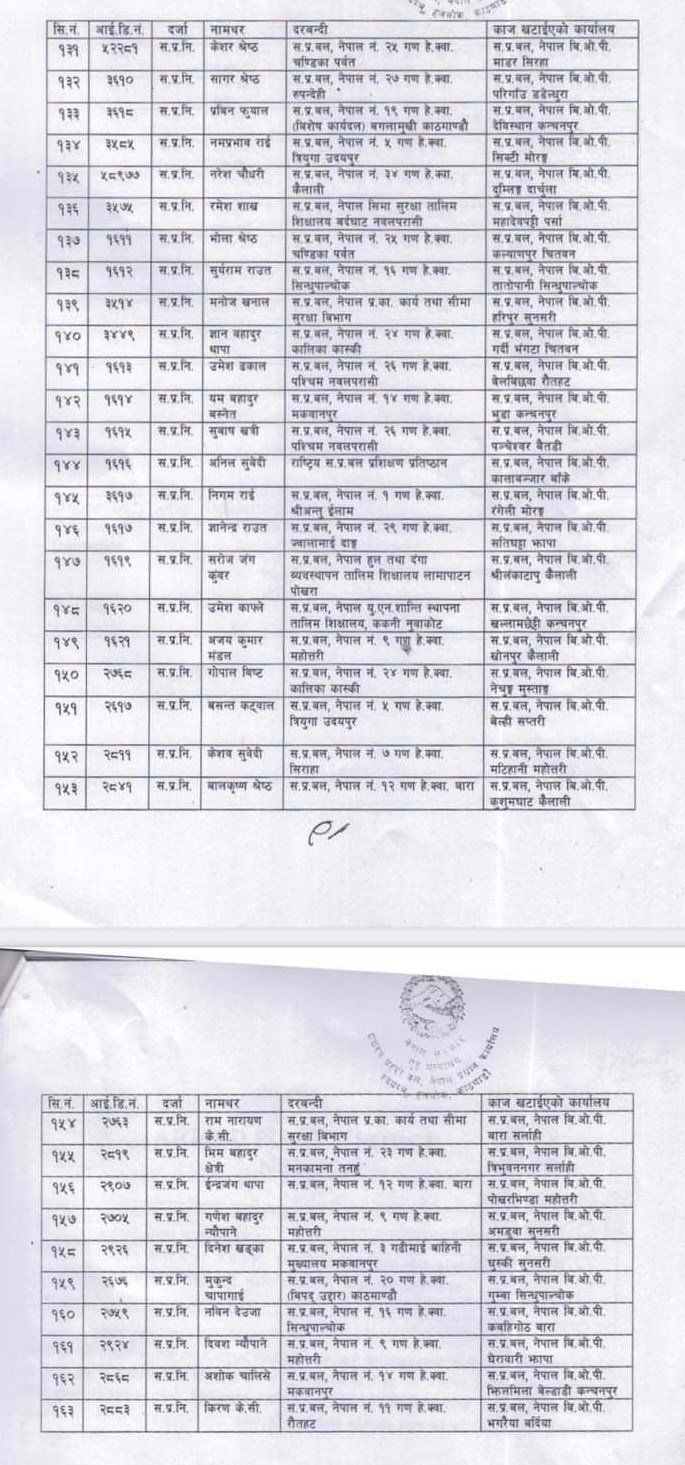 सशस्त्र महानिरीक्षक राजु अर्यालले मंगलवार १ सय ६३ बोर्डर आउट पोष्ट(बिओपी) का प्रमुखहरु समेत परिवर्तन गरेका छन् ।