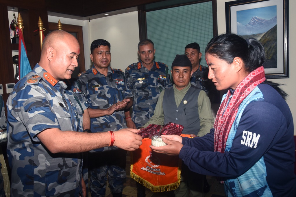 शुक्रबार आइजीपी अर्यालले सशस्त्र प्रहरी प्रधान कार्यालय स्वयम्भु हलचोकमा महिला टी ट्वान्टी एसिया कपमा सहभागी हुन जाने नेपाल एपीएफ क्लवका राष्ट्रिय क्रिकेट खेलाडीहरुलाई उत्कृष्ट खेल प्रदर्शनको शुभकानासहित हार्दिक विदाई गरेका हुन् ।