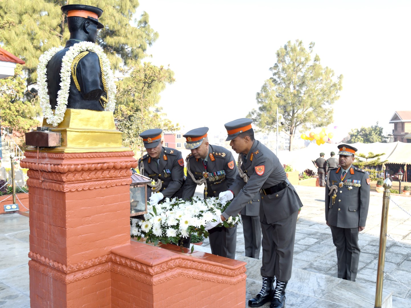 सशस्त्र प्रहरी दिवसको अवसरमा सप्ताहव्यापी कार्यक्रमअन्तर्गत सशस्त्र प्रहरी प्रधान कार्यालय हल्चोक स्वयम्भुमा मंगलबार सशस्त्र प्रहरी महानिरीक्षक राजु अर्यालको प्रमुख आतिथ्यमा प्रभातकालीन विशेष कार्यक्रम सम्पन्न भएको छ । विशेष समारोहमा सशस्त्र प्रहरी महानिरीक्षक अर्यालले अमर सशस्त्र प्रहरी स्मारकमा पुष्पहार चढाउनुका साथै संगठनका संस्थापक सशस्त्र प्रहरी महानिरीक्षक स्वर्गीय कृष्णमोहन श्रेष्ठ लगायत अमर सशस्त्र प्रहरीप्रति भावपूर्ण श्रद्धाञ्जली अर्पण गर्दै कर्तव्य पालनाको सिलसिलमा घाइते तथा अंगभंग भएका सशस्त्र प्रहरी कर्मचारीहरूको शिघ्र स्वास्थ्य लाभको कामना गरे ।