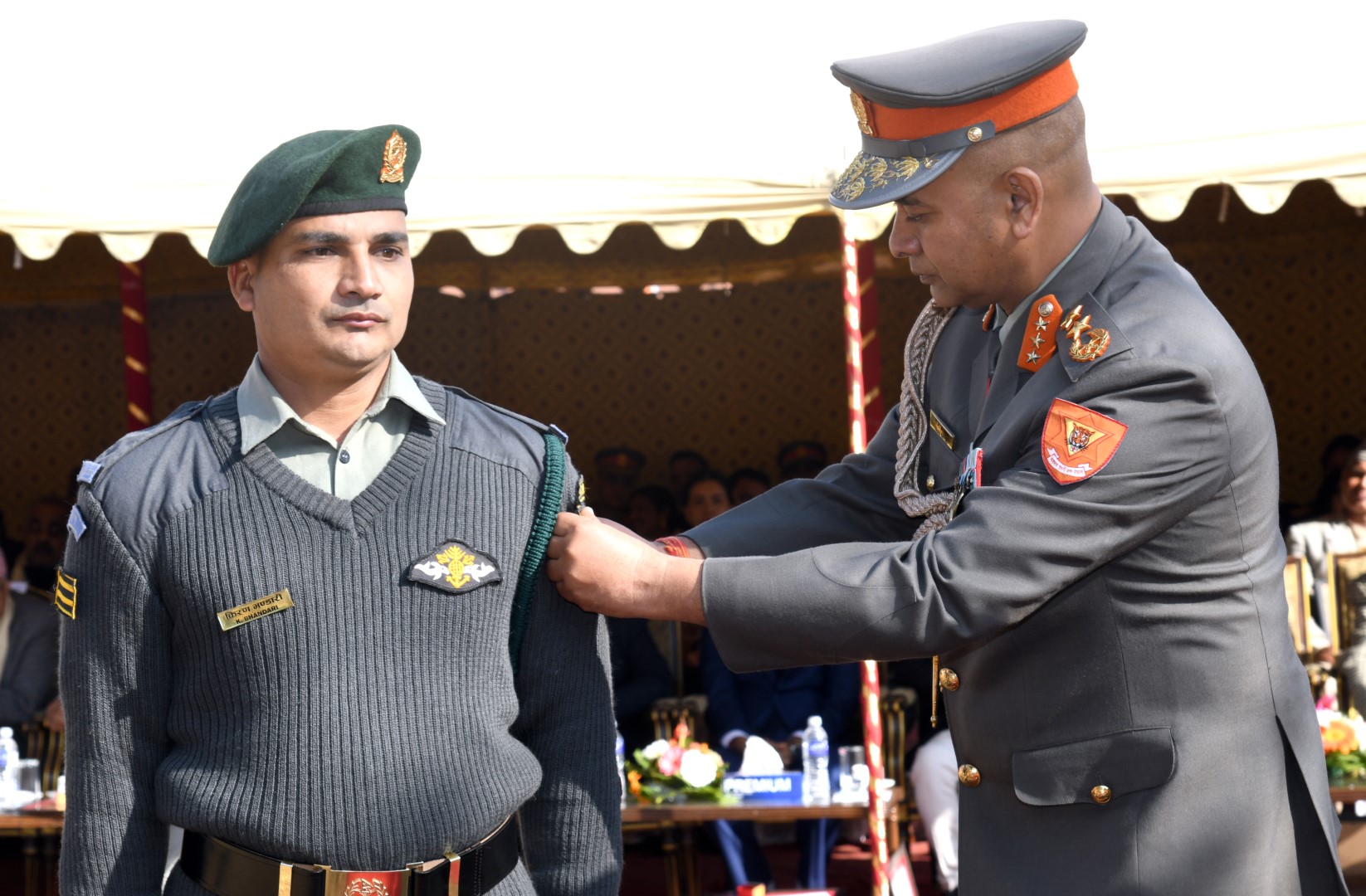 विशेष कार्यक्रममा महानिरीक्षक राजु अर्यालले वर्षभर नागरिकको सेवा, सुरक्षा र सहयोग र उद्वारमा उत्कृष्ट कार्य गर्न सफल ‘वर्ष जवान २०८१’ घोषित सशस्त्र प्रहरी बल नेपाल नम्बर ३३ त्रियुगा गण जुम्ला दरबन्दी भई नम्बर ६ महेश्वरी बाहिनी मुख्यालय सुर्खेतमा कार्यरत सशस्त्र प्रहरी सहायक हवल्दार किरण बहादुर भण्डारीलाई ‘वर्ष जवान’को ट्याग प्रदान गरे ।