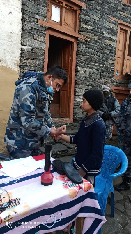 त्यस क्षेत्रका सुरक्षाकर्मी र स्थानीय गरी झण्डै एकसय जनाको स्वास्थ्य परीक्षण गरिएको छ । शिविरमा सशस्त्र प्रहरीका निरीक्षक डा.रेनिश भट्टराईले स्वास्थ्य परीक्षण गरेका थिए ।