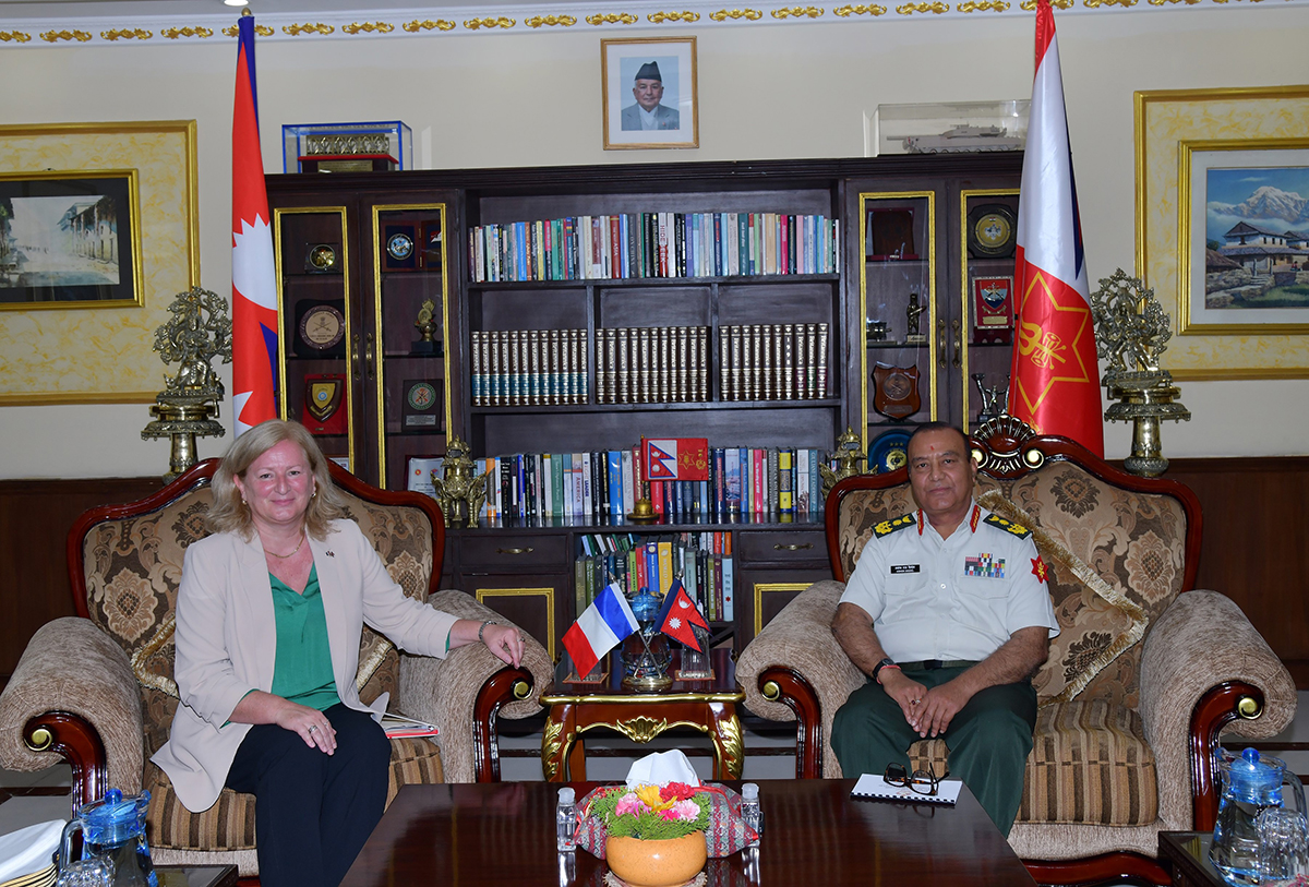 सोमबार प्रधानसेनापति सिग्देल र नेपालका लागि फ्रान्सका राजदूत भर्जिनी कर्टेभलबीच जङ्गीअड्डामा शिष्टाचार भेटघाट भएको छ ।