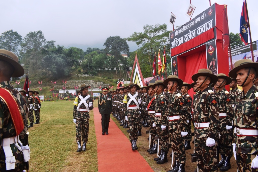 तालिम समापनका अवसरमा आयोजित अन्तिम दलेल कवाज कार्यक्रमअन्तर्गत श्री नम्बर १ सैन्य तालिम केन्द्र, त्रिशूलीमा सैनिक तालिम महानिर्देशक ध्रुव प्रकाश शाह, श्री नम्बर २ सैन्य तालिम केन्द्र सैनामैना लगायत विभिन्न पृतना, बाहिनी तथा गण/गुल्महरूमा सम्बन्धित पृतनापति, बाहिनीपति लगायतका ज्येष्ठ अधिकृतहरूले कवाज निरीक्षण गर्नुका साथै उत्कृष्ट शिक्षार्थीहरूलाई पुरस्कृत गरेका थिए ।