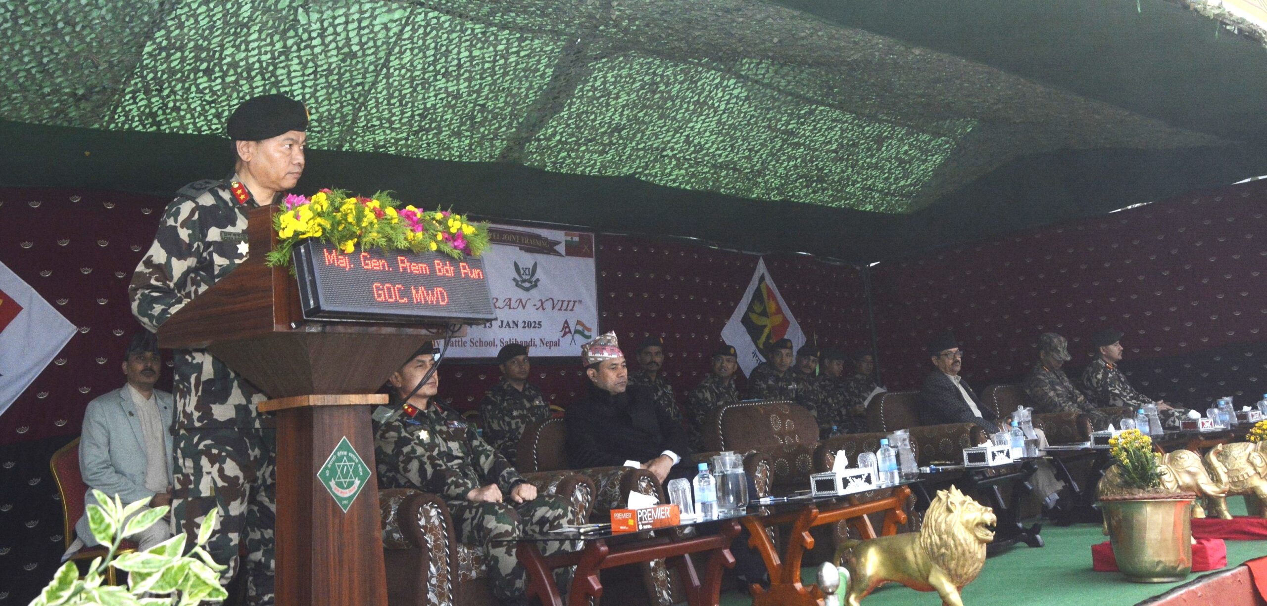 श्री मध्य पश्चिम पृतनाका पृतनापति उपरथी प्रेम बहादुर पुनले औपचारिक कार्यक्रमबीच अभ्यासको शुभारम्भ गरेका छन् ।