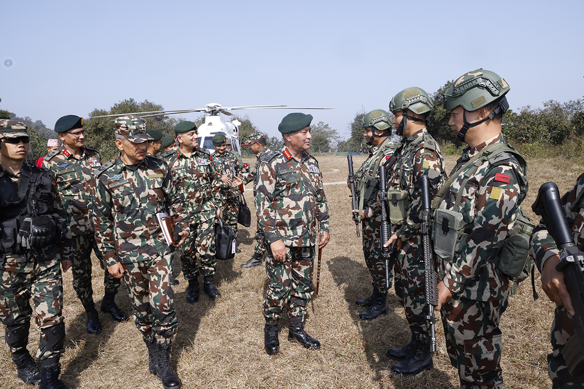काठमाण्डु – नेपाली सेनाको मध्यपूर्वी पृतना हेडक्वाटरमा प्रधानसेनापति अशोकराज सिग्देलले निरीक्षण गरेका छन् ।