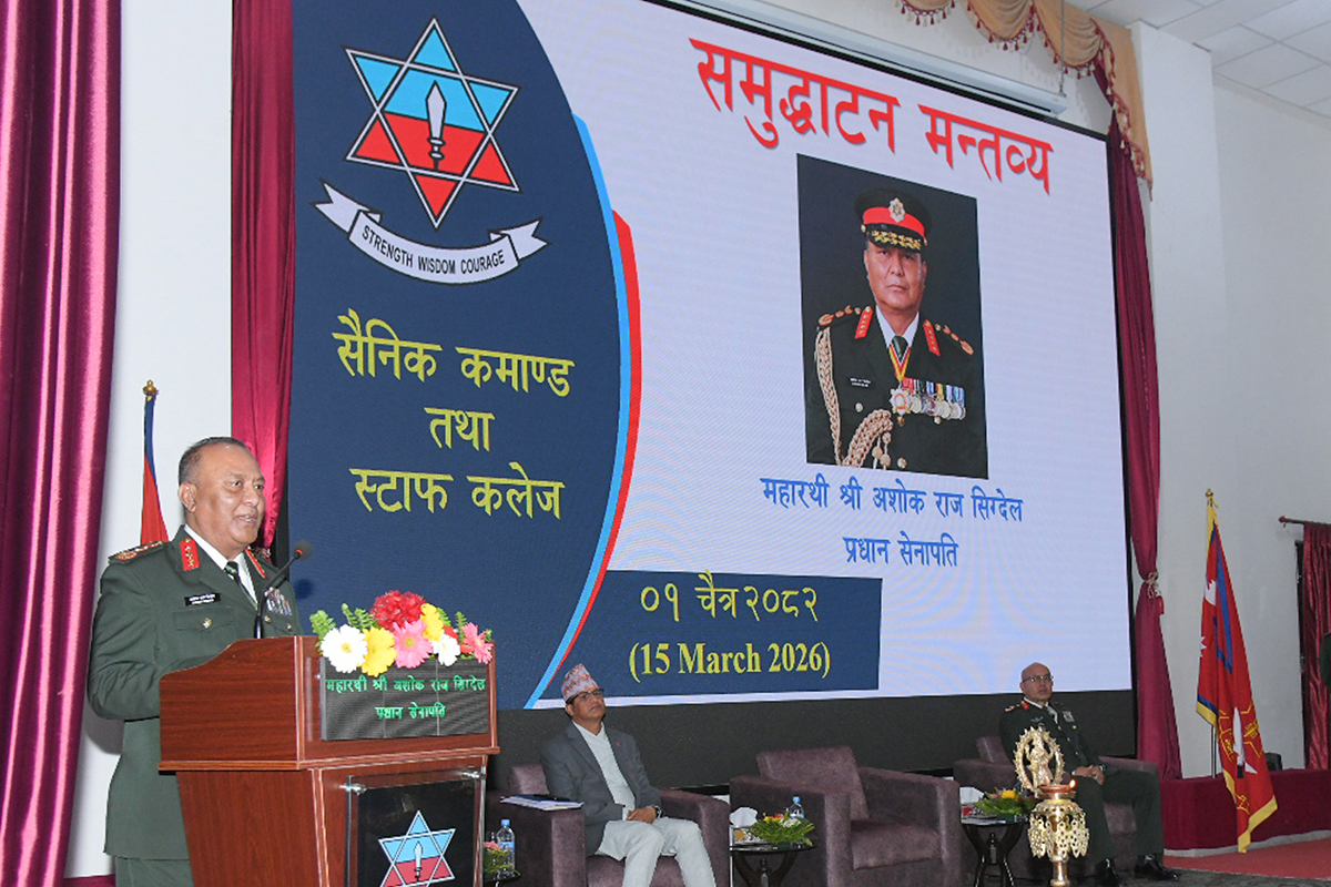 काठमाण्डु – रक्षा मन्त्रालय र नेपाली सेनाको सहकार्यमा शिवपुरी स्थित सैनिक कमाण्ड तथा स्टाफ कलेजमा सञ्चालन हुँदै आएको उच्चस्तरीय राष्ट्रिय सुरक्षा तालिमको एघारौँ संस्करण आईतबार प्रधान सेनापति अशोक राज सिग्देलले उद्घाटन गरेका छन् ।