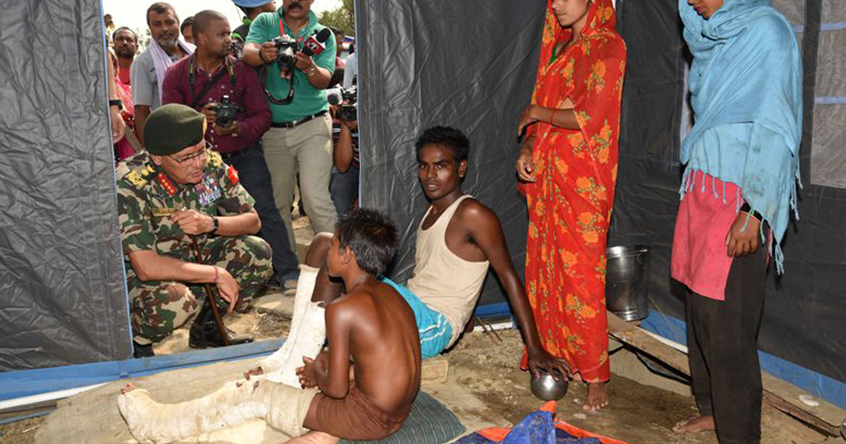 काठमाडौं– प्रधानसेनापति पूर्णचन्द्र थापा गत चैत १७ गते २८ जनाको ज्यान जाने गरी बारा र पर्सामा पर्सामा आएको टोर्नेडोपीडितलाई भेट्न गाउँमै पुगेका छन्।
