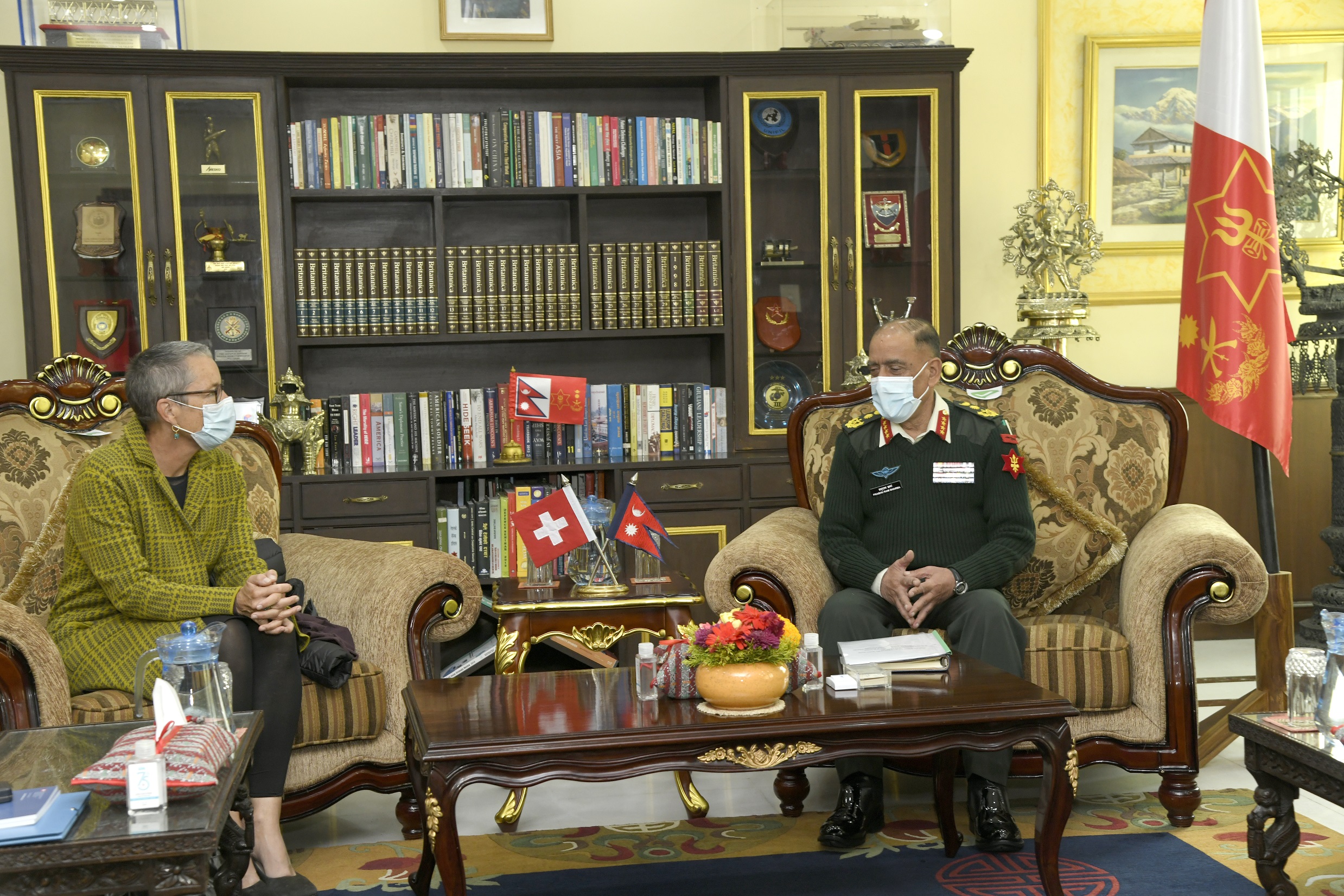 काठमाण्डु – प्रधानसेनापति प्रभुराम शर्मा र स्विट्जरल्याण्डका राजदूत एलिजाबेथ भोन क्यापेलरबीच भेटवार्ता भएको छ । राजदूत एलिजाबेथले जङ्गी अड्डा पुगेर प्रधानसेनापति शर्मासँग शिष्टाचार भेटवार्ता गरेकी हुन् ।